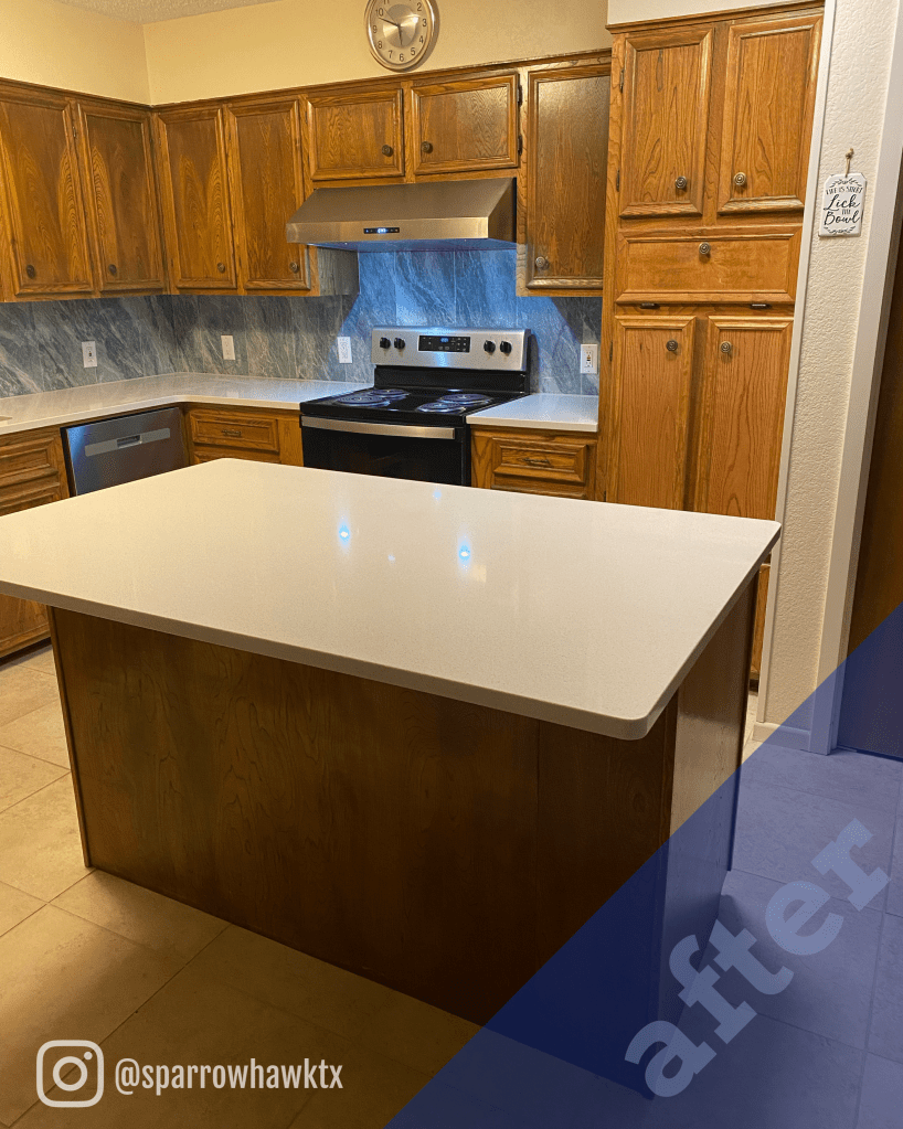 This is a great example of a beautiful kitchen facelift without all new cabinets or even painted cabinets.