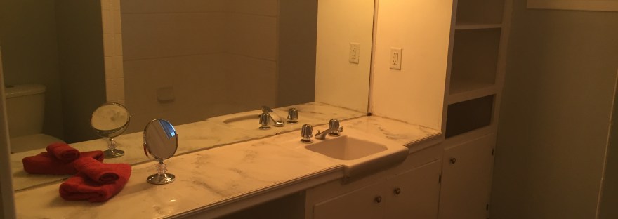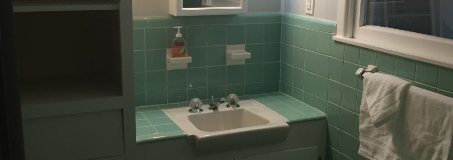 The master bathroom certainly needed the least work. Even though we removed every last yellow tile from the guest bathroom, we decided the teal tile was adorable and kept it! Before... After. We updated the medicine cabinet and light fixture and softened the walls with a grey color instead of white. We removed the old… Continue reading House Flip: 341 // Master Bathroom